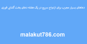در این مطلب از سایت ادعیه و اذکار ملکوت۷۸۶ دعاهای بسیار مجرب برای ازدواج سریع در یک هفته دعای بخت گشایی فوری پرداخته ایم ان شاءالله با دعاهای تجربه شده ازدواج عالی صورت می گیرد .