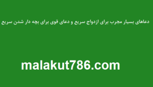 در این مطلب از سایت ادعیه و اذکار ملکوت۷۸۶ دعاهای بسیار مجرب برای ازدواج سریع و دعای قوی برای بچه دار شدن سریع پرداخته ایم ان شاءالله ازدواج فوری انجام می گیرد و برای صاحب فرزند شدن سریع نتیجه خواهد گرفت .