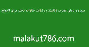 در این مطلب از سایت ادعیه و اذکار ملکوت۷۸۶ سوره و دعای مجرب زبانبند و رضایت خانواده دختر برای ازدواج پرداخته ایم ان شاءالله زبان خانواده دختر بسته خواهد شد .