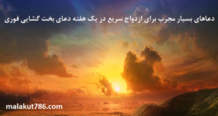 در این مطلب از سایت ادعیه و اذکار ملکوت۷۸۶  دعاهای بسیار مجرب برای ازدواج سریع در یک هفته دعای بخت گشایی فوری پرداخته ایم ان شاءالله با دعاهای تجربه شده ازدواج عالی صورت می گیرد .    دعا بخت گشایی دختران,دعا بخت گشایی پسر,دعا بخت گشایی,دعا بخت گشایی تضمینی,دعا بخت گشایی …